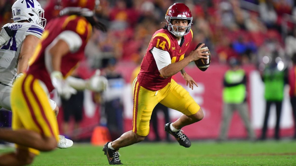 USC’s Jayden Maiava still ranks first nationally in Total QBR, as he has for most of the season. His combination of sack avoidance and big-play passing is rare — only 9.9% of pressures on him become sacks (fifth among power-conference QBs) and he averages 14.3 yards per completion (fourth).