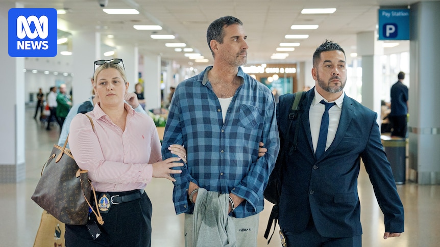 Peter Scammell, 44, foi preso em Victoria na semana passada e levado de avião para Darwin na quarta-feira, acompanhado por vários policiais que o escoltaram pelo aeroporto.
