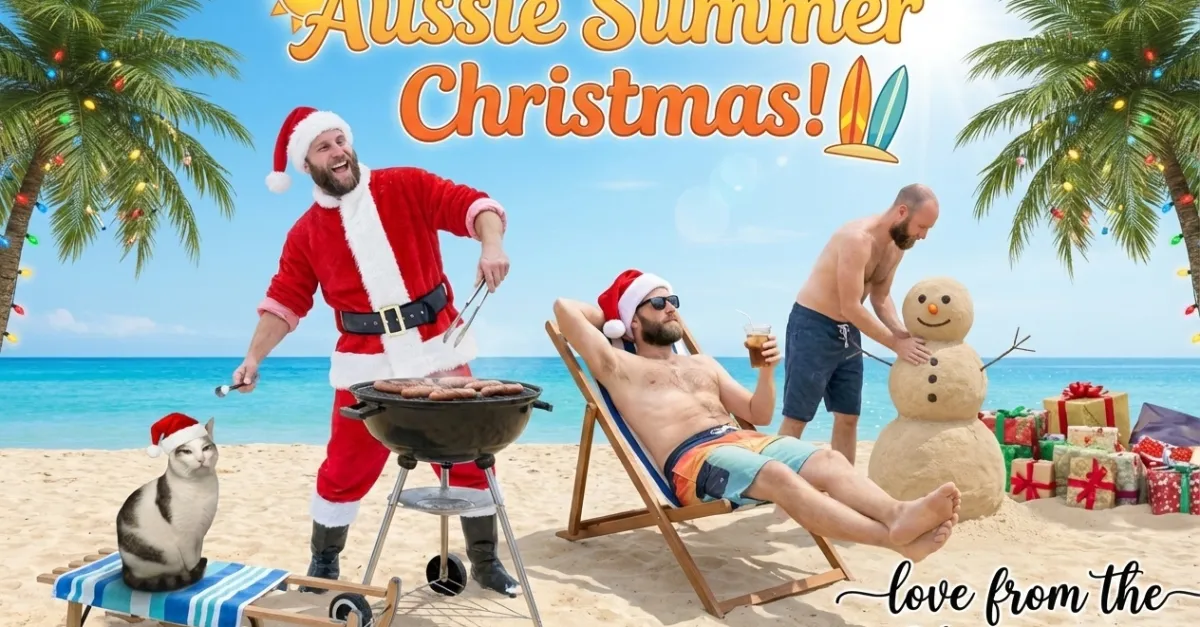 Mas nem tudo foi ótimo. O modelo não conseguiu preservar o texto exato do meu cartão que eu havia solicitado. Em vez de “Feliz Natal!” optou por “Aussie Summer Christmas!” Ele também parece ter dificuldades com os animais: o gato da minha irmã está sentado exatamente na mesma pose afetada da imagem de referência que forneci em todas as versões do cartão (no entanto, ele recebeu um chapéu de Papai Noel extravagante).